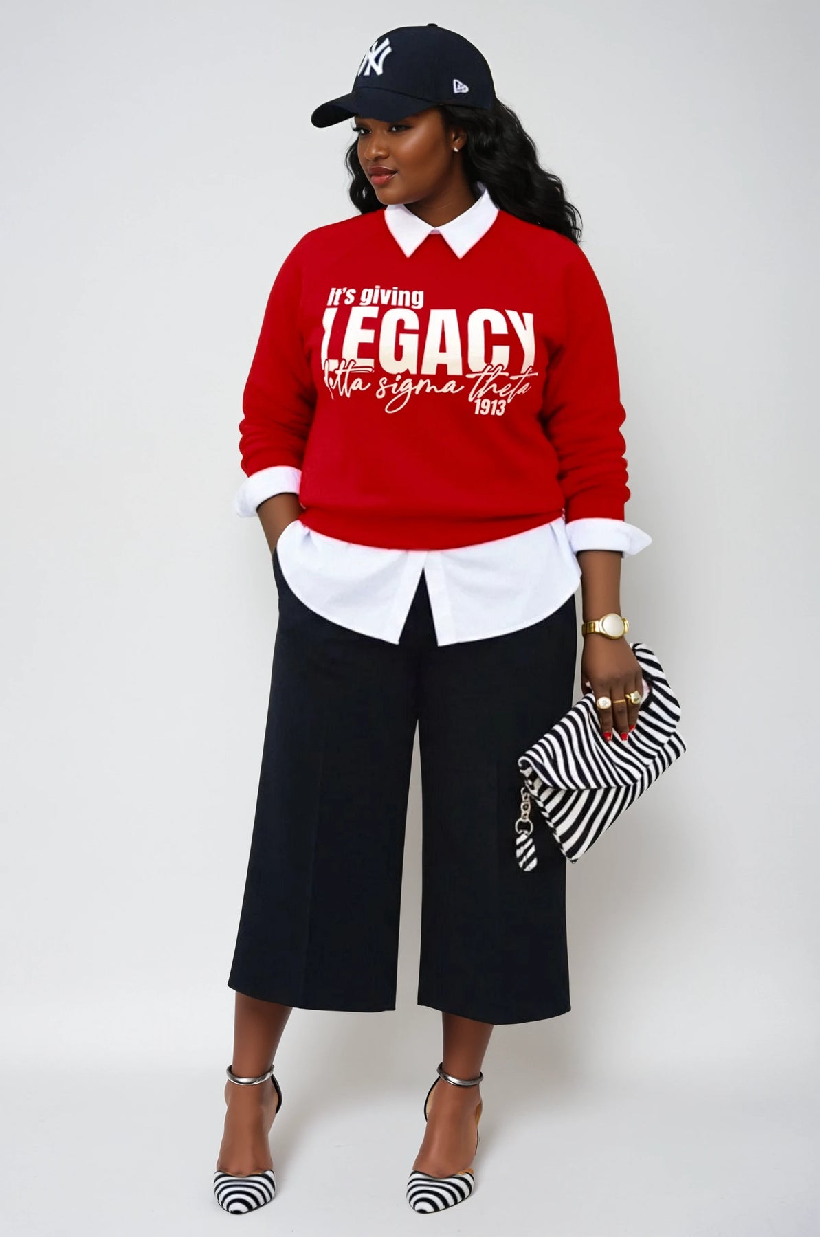 It’s giving legacy. The Liz Legacy Tee is for the daughters and grands who proudly carry the torch. With a playful, bold statement, this tee celebrates the bond between family and Delta Sigma Theta—because you’re not just in the sorority, you were raised in it. It’s an easy, everyday piece that quietly says, “I come from Delta.”