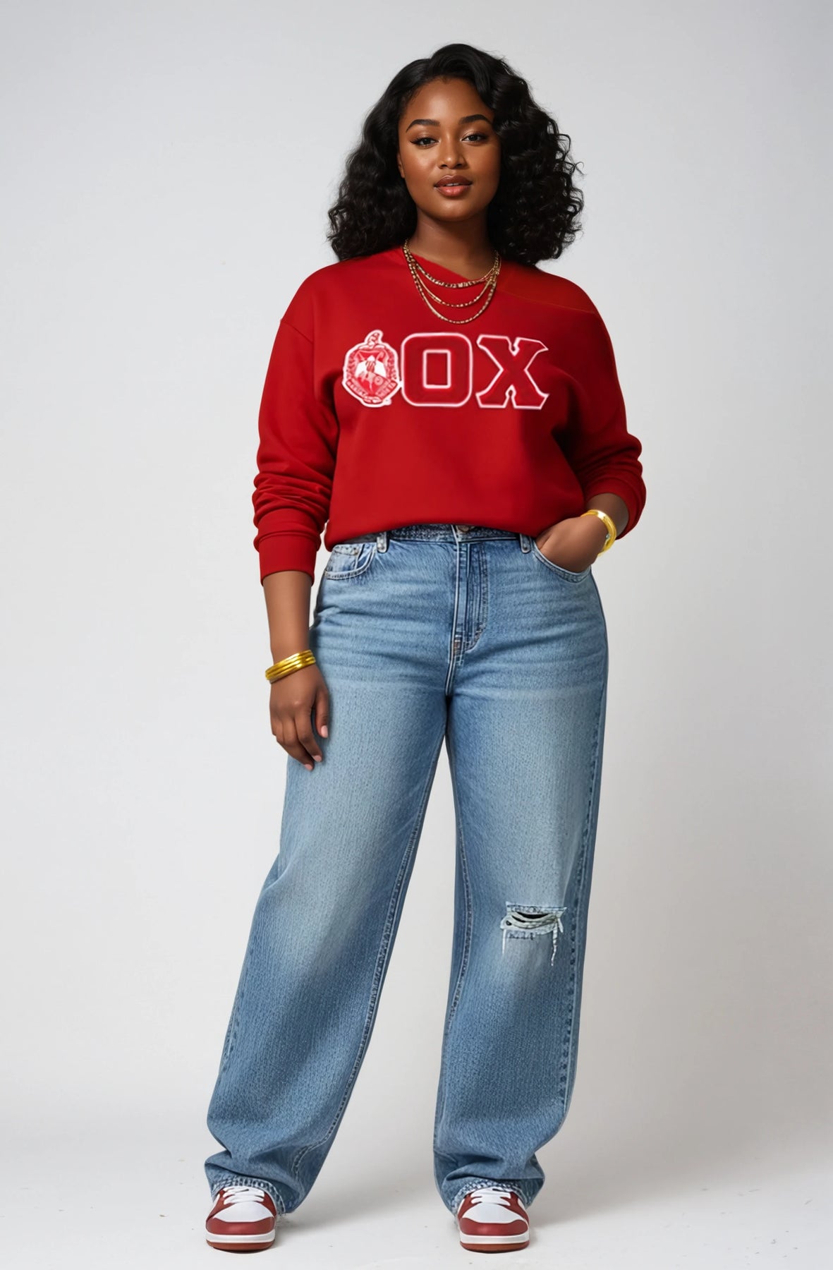 Dress it up with a leather skirt and boots for chapter events, or keep it casual with jeans and Jordans. Off-the-shoulder for a little drama, crew neck for a classic look—you decide.